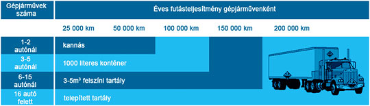 A kb. 4%-os adagolási arány figyelembe vételével 1000 liter dízel üzemanyag felhasználáskor mindössze 40 liter AdBlue befecskendezése szükséges.